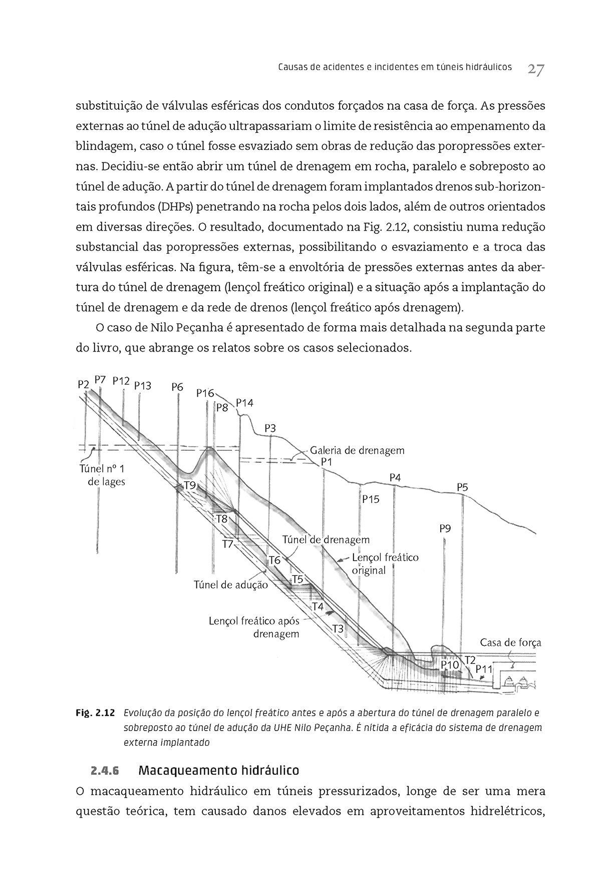 Sistemas subterrâneos de condução de água podem ser complexos, o que é agravado pela diversidade de condições geológicas, físicas. geométricas e ambientais. As investigações na fase de projeto dificilmente preveem todas as condições que serão encontradas durante a construção, adicionando aos túneis um elemento vulnerável a acidentes e incidentes. Patologia de túneis hidráulicos traça um breve histórico dessas obras no Brasil e analisa as causas de acidentes e incidentes ocorridos. Revê as diretrizes de projeto e identifica os locais de escape de água. A segunda parte da obra traz 11 cadastros detalhados de casos reais de acidentes e incidentes, com desenhos do projeto do empreendimento, descrição, dados gerais e causas do acidente; apresenta ainda as medidas de recuperação.